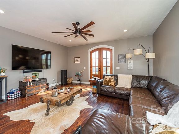 This one-of-a-kind home has so much to offer. More than 3200 sq ft of living space with luxurious details - custom knotty alder cabinetry, wide plank, hand hewn hardwood floors, tall antique style arched French doors, concrete counters - AND 2,255 sq ft of garage and workshop space including an almost 50 ft long Drive Thru HEATED garage/shop PLUS a 3 bay garage with an office and storage room. The media room features a custom built rustic barn that is hiding bunk beds within it. The heart of this home is the massive Great Room centered by the dining area and anchored by the kitchen and seating area at each end. The arched doors lead out to the expansive deck overlooking the property. If you are among the growing fans of "barndominiums" you will love this home. Superior quality construction from the insulated interior walls to the hardboard siding. It sits on almost 6 acres in the desirable and very private Foxwood Hills community. Don't miss out on this one. There is nothing like it!