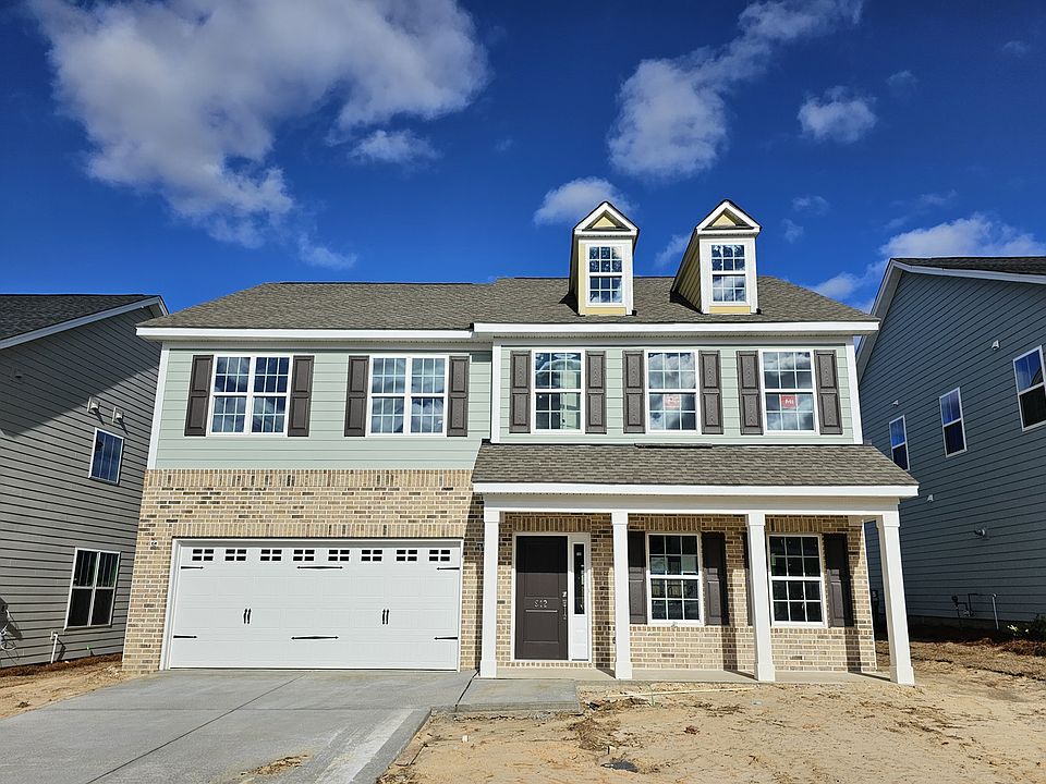 The Langford is a two-story home with four bedrooms and three bathrooms. The foyer opens to the large great room and arched openings lead to the kitchen and dining area. A guest suite and a private full bathroom are also located on the main floor. Three upstairs secondary bedrooms all feature large closets. The primary suite features a sitting area, a large walk-in closet, and a primary bath with a water closet and plentiful storage. A large sunroom attached to the Patio deck for enjoyment