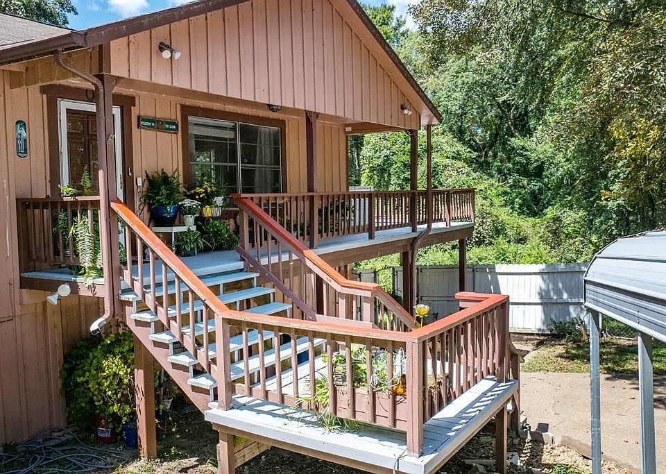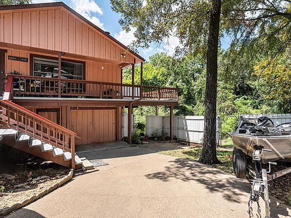 Picture yourself in your very own “grown-up treehouse,” relaxing on a sprawling, elevated deck surrounded by a tranquil canopy of towering mature trees. This charming home radiates a warm, lodge-like ambiance featuring an oversized wood-burning stone fireplace, vaulted ceilings, and a spacious open-concept layout that invites both comfort and connection. The kitchen comes complete with stainless steel appliances including the refrigerator, and flows seamlessly into the dining area and inviting living room—perfect for entertaining family & friends or enjoying cozy nights by the fire. The expansive primary suite offers incredible flexibility with enough space to (re)create an additional bedroom, home office, nursery, or private owner’s retreat tailored to your lifestyle. Additional highlights include a full-home propane-powered Generac generator for peace of mind; an expansive covered downstairs storage area; private workshop with small kitchenette, ideal for hobbies, playroom, or even future potential guest quarters; 3-car carports secured behind a fenced and gated yard with a safe, enclosed space for your children or pets to play! Situated on Cedar Creek Lake’s desirable west side, this property offers access to a large POA park, fishing pier, and community boat launch, making your relaxing lake days effortless and unforgettable. Whether you’re seeking a full-time residence or serene weekend escape, this home is a true gem just steps away from Cedar Creek Lake!