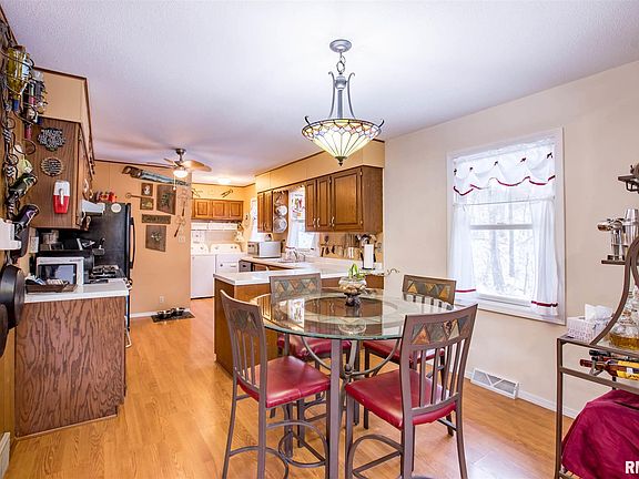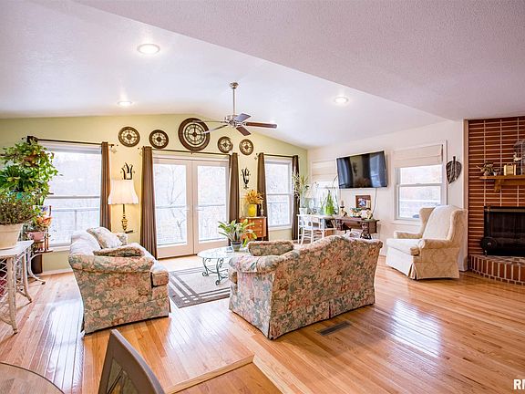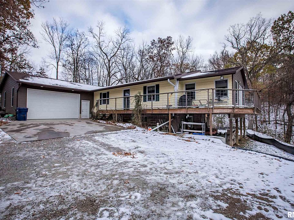 Drive down from a quiet cul-de-sac to a private ranch with walkout lower level on 5+ acres in Rockridge School District. The home offers many updates, including a 12x20 sunroom addition with wrap-around deck eight years ago overlooking a peaceful wooded setting full of wildlife. Vinyl siding, Anderson windows, and roof in 2017. Lower level area with gas fireplace and flat screen TV could easily be converted to a mother-in-law suite - numerous possibilities! Recently renovated bathroom with tile throughout and French doors leading out to a covered patio and hot tub. Plenty of room for grilling and relaxing. Garage space that automotive hobbyists desire in the 32x52 attached garage with radiant floor heat, central air, new automotive lift, and air compressor. Also, a detached 30x24 garage with spray foam insulation, heat, cooling, RV power hookup outside, and a greenhouse next to it. Several fruit trees and berry bushes. There are footings in place to add more living space.