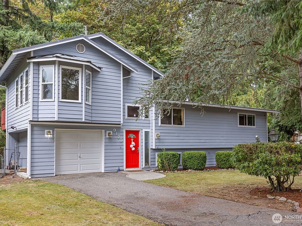 Beautiful residence showcasing Brazilian cherry hardwood floors, freshly painted white millwork, modern fixtures, and double-pane windows encased in wood. Elegant formal living areas boast a wood-burning fireplace with a granite surround, custom built-in shelving, skylights, and a luminous kitchen adorned with granite countertops, tiled backsplash, and stainless steel appliances. The master bathroom features a tiled shower, while the main bathroom offers a luxurious jetted soaking tub. Additional amenities include an upstairs bonus room and a lower level recreation room, catering to diverse lifestyles. Outside, a stamped concrete patio and spacious deck overlook a fenced yard, complete with a play structure and more!