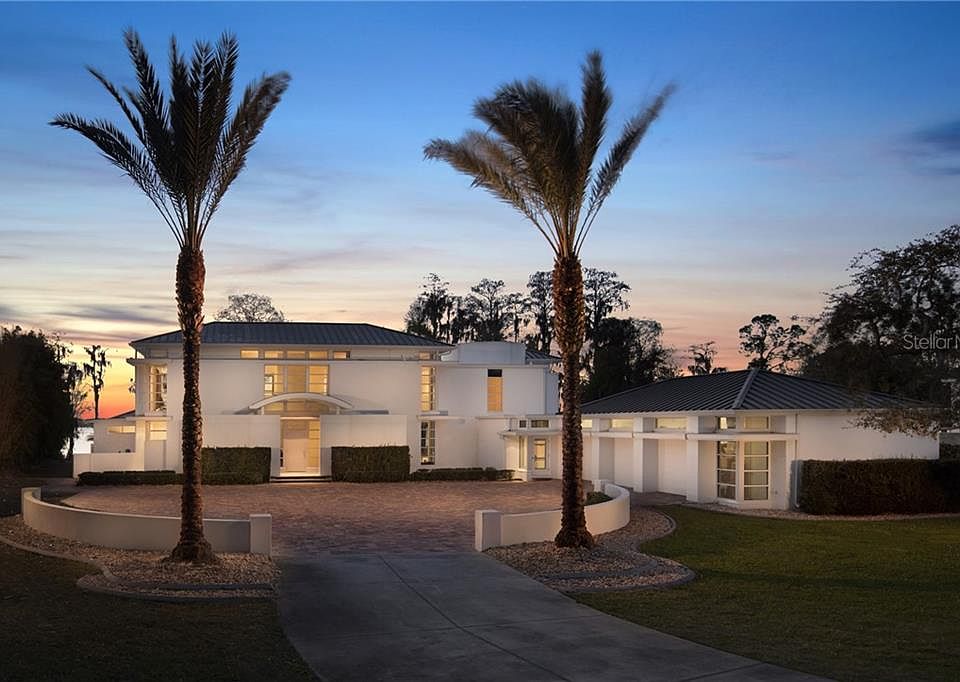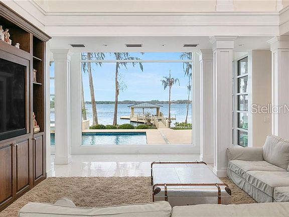 Stunning contemporary lake front estate located on "Millionaires Row" in Dr Phillips. This exquisite residence features unparallel views of Lake Sheen from the walls of windows throughout the home. The home has undergone a multitude of recent renovations and features a bright open floor plan. From the minute you cross the bridge leading to the front door your eyes are immediately greeted by soaring 2 story ceilings and a striking crystal chandelier. The chef in the family will love the recently renovated kitchen with its exotic granite countertops, large center island, and top of the line appliances. There are two amazing master bedroom suites to choose from along with 2 additional bedrooms. This home is the epitome of Florida lake front living, featuring a large covered lanai with retractable screens, a gas fireplace, full summer kitchen, and an outdoor pool bath with a steam shower. All of this overlooking the sparkling pool, hot tub, and an amazing back yard with over 145 feet of lake frontage and a private covered boat dock. Located just minutes from famed restaurant row, all of the area theme parks, and world class shopping, the location truly can't be beat. The community also features no HOA. The property is split into two individual parcels with the front non-lake front lot being sold separately.