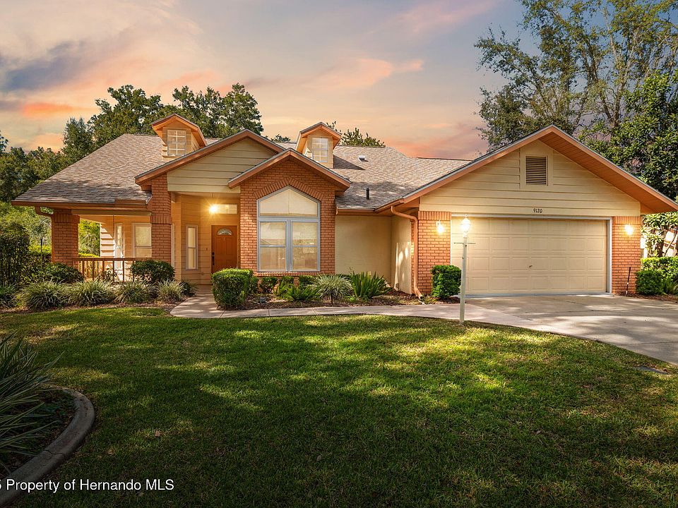 One or more photographs has been virtually staged. This beautiful 3-bedroom, 2-bath home sits on a .27-acre lot within the sought-after Rainbow Springs community. Surrounded by lush, mature landscaping that provides privacy on all sides, this home offers the perfect combination of elegance, comfort, and Florida-style living. Inside, you'll find soaring vaulted ceilings, an abundance of natural light, and a new roof installed in 2020 for peace of mind. A large front porch, accented by classic brick columns, creates a welcoming entrance and a perfect spot to sit and enjoy the tranquil surroundings. Step inside to discover an open and airy layout filled with natural light from large windows and skylights. The kitchen features granite countertops, wood cabinetry, a central island, and a skylight that brings the outdoors in. The adjoining dining area and breakfast nook are bright and inviting, while the living room flows seamlessly into the expansive sunroom with walls of windows overlooking the screened pool area. The primary suite is a peaceful retreat with high ceilings, tall windows framing garden views, and an en-suite bath with dual vanities, a soaking tub, and a glass-enclosed shower. Additional bedrooms are comfortably sized, with one offering direct access to the pool—ideal for guests. Outside, enjoy the screened lanai and sparkling in-ground pool, surrounded by lush greenery for a true sense of privacy and serenity. Residents of Rainbow Springs enjoy exclusive access to a private river park with a beach and swimming area, as well as a clubhouse featuring a restaurant, fitness center, and billiards room. The community also includes multiple pools, pickleball, tennis, and bocce ball courts, a 9-hole Frisbee golf course, and lighted tennis courts—all designed for an active, resort-style lifestyle. Conveniently located near Rainbow Springs State Park and the Withlacoochee River, this home offers tranquility, recreation, and everyday convenience in one beautiful setting.