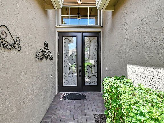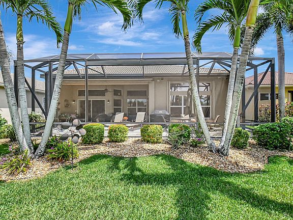 PRICED BELOW APPRAISED VALUE! Experience a luxurious and active 55+ lifestyle in this beautifully maintained single-family home in Valencia Reserve. Built in 2013 and nestled on a serene cul-de-sac just half a mile from the clubhouse, this single-story residence offers breathtaking lake views from the expanded patio with travertine pavers. Inside, the home features a striking stacked stone wall with decorative fireplace, a two-car garage with epoxy flooring, volume ceilings, a split bedroom floor plan, and no carpet! The primary bedroom provides two walk-in closets and sliding doors that open to the patio overlooking the lake. Enjoy your morning coffee while watching the sun rise and dine al fresco while watching the sun set. The en-suite bathroom has double sinks, a walk-in shower, and a water closet. The den can easily be converted to a third bedroom with the addition of a closet. Complete hurricane protection provided by accordion shutters and impact rated doors. The A/C was replaced in 2022 and has an infrared light to improve air quality and the hot water heater was replaced in 2023. The low HOA includes a 24/7 manned gate, cable, lawn care, an on-site manager, and resort style amenities.
