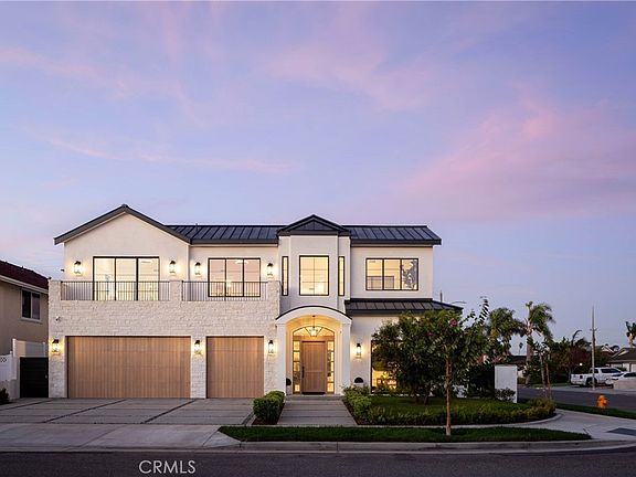 Completed in 2025, this brand-new coastal estate at 9121 Christine Drive sets a new standard for luxury in Huntington Beach. Positioned on a premier corner lot, the home offers nearly 5,000 sq. ft. of living space and a spectacular 560 sq. ft. rooftop deck with unobstructed ocean views. Designed with both form and function in mind, it combines timeless architectural detail with state-of-the-art construction and absolutely premium materials. Step inside to soaring 11-foot ceilings adorned with custom wood beams, wide-plank European white oak flooring, and natural light streaming through Milgard windows and French doors. Indoor and outdoor living flow seamlessly thanks to a dramatic La Cantina pocket door that opens to the main entertaining space, anchored by a Belvedere book-matched marble fireplace. The main kitchen showcases white oak cabinetry, Taj Mahal quartzite counters, a 72” Sub-Zero refrigerator, 48” Wolf range, and Sub-Zero wine fridge. A separate butler’s kitchen, with Thermador appliances and a walk-in pantry, ensures effortless hosting. The primary suite is a true retreat with vaulted ceilings, a stone fireplace, alabaster marble chandeliers, and a 30-foot balcony capturing ocean breezes. Its spa-inspired bath boasts full-slab marble shower walls, a custom double vanity with Brizo polished gold fixtures, and a boutique-style walk-in closet with illuminated white oak cabinetry. Additional highlights include a three-car garage with custom rift oak doors, an elevator servicing all levels, two laundry rooms, a solar system, and a durable metal roof. Designer guest baths feature Porcelanosa and Ann Sacks tile, while a Taj Mahal quartzite wet bar adds sophistication to the entertaining level. With no expense spared and every finish hand-selected, this one-of-a-kind residence blends architectural excellence with unmatched coastal living—moments from the sand and surf of Huntington Beach.