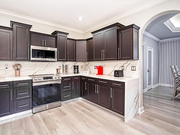 Modern, spacious, and filled with upgraded finishes, you'll wish you had this kitchen in your house! This fully equipped chef's kitchen has everything you need for all your dining needs and more. Featuring top-of-the-line appliances, a kitchen peninsula island, and high-end upgrades, what more could you ask for?