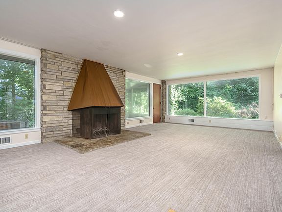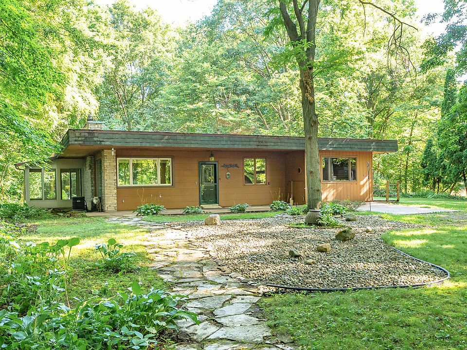Privacy awaits you with this wonderful home on nearly 3 acres of woods. You will walk in and fall in love with the beautiful views from the wall of glass in the living room and also be able to step into the 3 seasons room that looks out to the wooded setting. There is an awesome fireplace in the spacious living room with tons of space for your furniture and plenty of space to set up a desk or sitting area. 2 bedrooms with the primary being quite large with some built ins and a 2nd smaller bedroom and then a family bath off the hallway. Large kitchen with lots of counter and cabinet space with all appliances and good size informal dining. A full basement with cedar closet and plenty of storage, large covered front entrance and deck and nice wooded lot with some trails. You will love this.