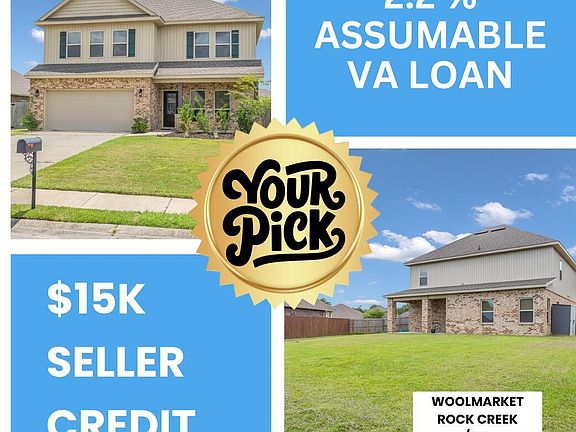2.2% ASSUMABLE VA LOAN RATE or SELLER WILL OFFER $15K IN CONCESSIONS. BUYERS CAN USE THIS CREDIT FOR CLOSING, RATE BUY DOWN, PAINT.....WOOLMARKET's Rock Creek Community is convenient to both Keesler AFB and NCBC Gulfport along with nearby shopping and entertainment. The local schools, Woolmarket, North Woolmarket Middle, and both d'Iberville High or St. Patrick Catholic 7-12 Schools are also just a stone's throw away from this 4bed/3.5 bath home, built in 2020. With 2,496 sq. feet and a two-car garage, there's plenty of space for everyone! The primary bedroom, with a LARGE WALK IN CLOSET, is on the main floor. Three additional bedrooms, all with walk-in closets, are upstairs along with a large SECOND LIVING SPACE that could be used as a game-room or office space! The home comes with GRANITE COUNTER TOPS throughout along with a half bath near the kitchen and garage entrance! The LARGE BACKYARD provides ample room for outdoor fun! This SINGLE OWNER HOME has been well kept and very gently used!