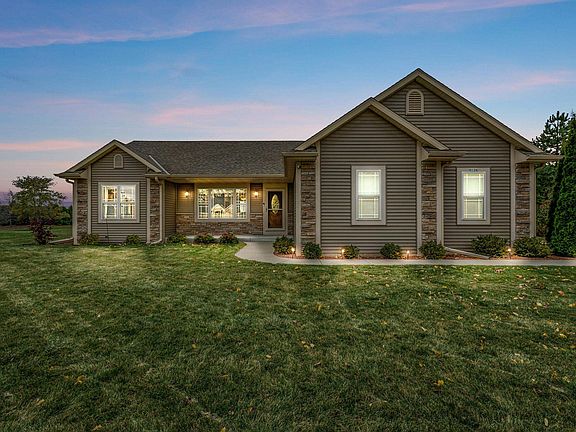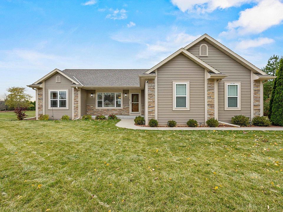 Beautiful split-style ranch with 2.5-car garage, soaring cathedral ceilings, cherry cabinets (soft-close), solid 6-panel doors, custom window treatments, and main floor laundry. Spacious walk-in closets in all bedrooms. Lower level is stubbed for a future bath and includes a radon mitigation system. Located in a quiet subdivision with direct walking path to playground and fields. Easy access to I-94 & I-43—just minutes from shopping, dining, and more. A perfect blend of comfort, style, and convenience! Showings begin 11/29.