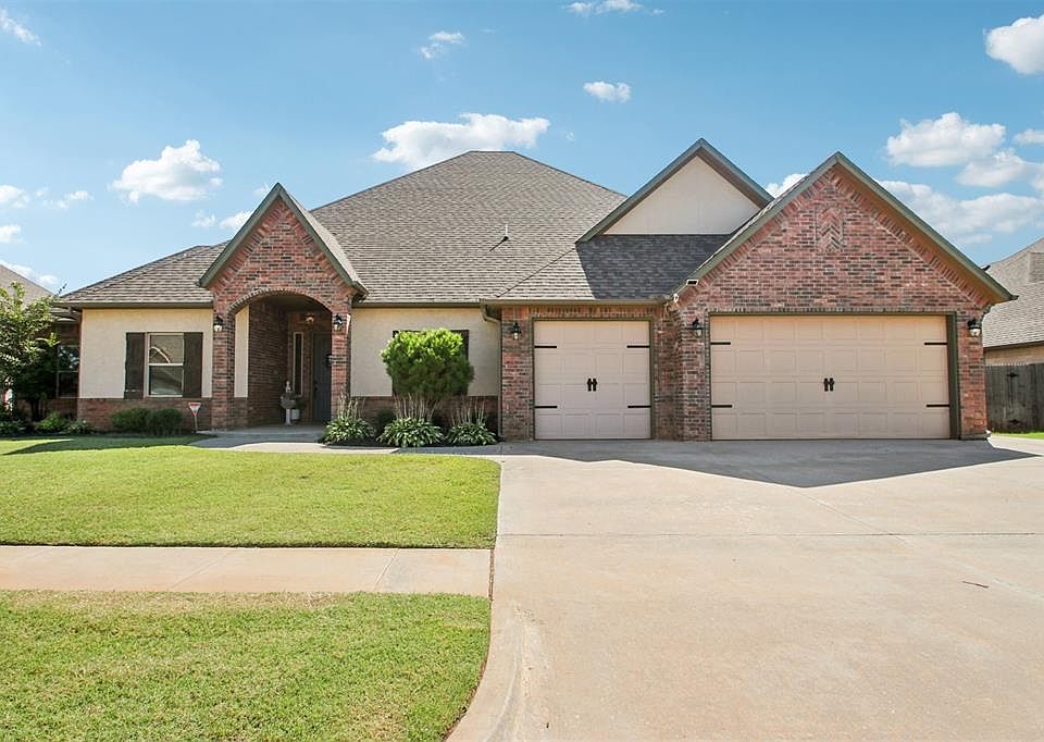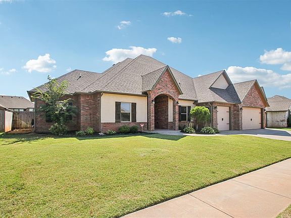 Discover exceptional comfort and versatility in this 4 (or 5) bedroom home with dual master suites in the sought-after Morgan Creek neighborhood. Thoughtfully designed and new paint throughout, this residence offers nearly 2,950 sq ft of living space with an open layout that blends style and functionality. Inside, you’ll find two spacious master retreats, each with its own en-suite bathroom — ideal for multigenerational living or hosting long-term guests. A 5th flexible room can serve as a study or additional bedroom, making the floor plan adaptable to your lifestyle. The gourmet kitchen is a true centerpiece, featuring granite countertops, stainless steel appliances, and a large island, perfect for both daily meals and entertaining. The living room offers a cozy corner fireplace with gas logs, while the spa-inspired primary suite includes double vanities, a whirlpool tub, and a walk-in shower. Step outside to a large covered patio designed for entertaining, complete with a gas hookup for grilling. The landscaped yard provides plenty of room to enjoy, while practical features like the in-ground storm shelter, sprinkler system, and security system add peace of mind. Situated in the Mustang School District (Prairie View Elementary, Mustang North Middle, Mustang High), this home delivers both convenience and community. From its dual master design to its outdoor living spaces, this property checks all the boxes. Schedule your showing today! Seller is a licensed real estate agent in the state of Oklahoma.