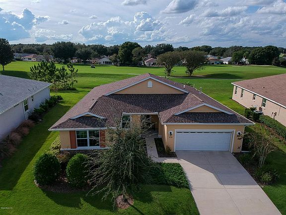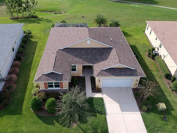 PREMIUM GOLF COURSE LOT! Move-in ready York model in On Top of the World 55+ gated golf community with an open concept floorplan & $30K in upgrades! You'll enjoy the golf course views from expanded lanai & birdcage, relax in personal hot tub, solar shades for privacy. This home features 2 bdrms, 2 baths with upgraded tile showers, Flex room, crown molding, upgraded tile floors throughout, gourmet kitchen has maple cabinets with pull-outs & a large bank of drawers, gas convection range, and Corian countertops. Included is a 22K whole house Generac natural gas generator, hot water heater circulate pump, 2 car extended garage w/painted floor. Builders warranty conveys to new owner.