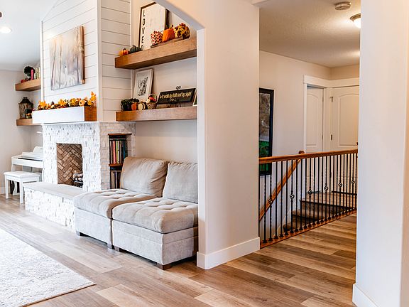 Welcome to this beautifully maintained rambler nestled in the sought-after neighbor of Eagle Mountain. This residence offers plenty of space and a finished basement, providing ample room for comfortable living. Step inside to discover vaulted ceilings, elegant French doors, and a thoughtfully designed layout featuring an open kitchen, and cozy family spaces. The primary suite includes a walk-in closet and a luxurious bath with a separate tub and shower. Outside, enjoy a fully landscaped yard fenced for privacy, with access to community amenities including a pool, pickleball court, playground, and picnic area.