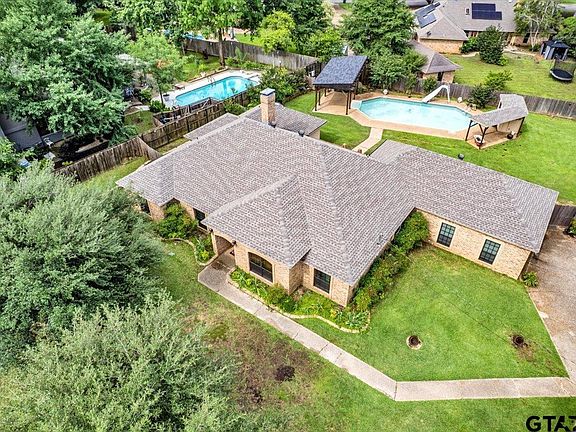Welcome to this stunning residence situated in a prime location in Tyler, Texas. This exceptional property features a spacious layout with 3 bedrooms and 3.5 bathrooms, and offers comfortable indoor and outdoor living spaces. Upon entering, you're greeted by an inviting interior characterized by a bright and airy living area adorned with elegant wainscotting and a cozy fireplace, perfect for relaxing or entertaining guests. The kitchen is a chef's delight, boasting modern appliances, granite countertops, a large island, and ample cabinet space for storage. The master suite is a private retreat, complete with a well-appointed ensuite bathroom featuring a soaking tub, separate shower, and dual vanities. Additional bedrooms, and a beautifully updated bathroom, provide versatility for family members or guests. Outside, the property showcases a beautifully landscaped yard with mature trees, a pool, a pergola, a water feature, and landscape lighting, creating a peaceful oasis for outdoor activities and gatherings. The covered patio is ideal for alfresco dining or simply enjoying the tranquility of the surroundings. The poolhouse is equipped with a full bathroom. Located in a sought-after neighborhood in Tyler, this home offers proximity to excellent schools in Whitehouse ISD, shopping, dining, and recreational amenities. Experience the best of East Texas living at 9125 Old Hickory Road. Schedule a showing today to make this impressive property your new home!