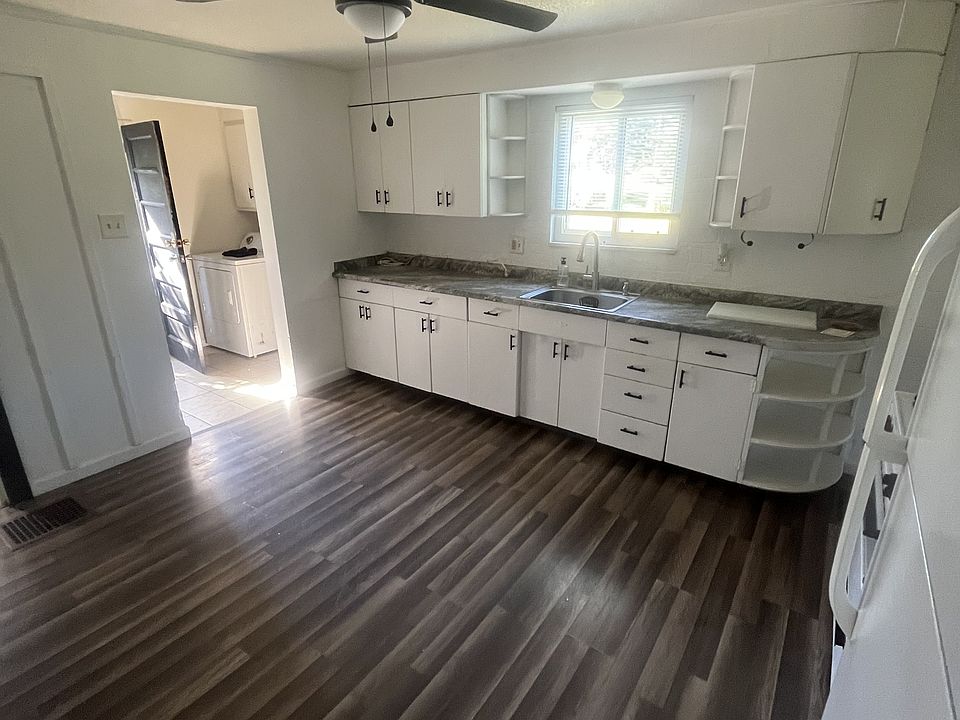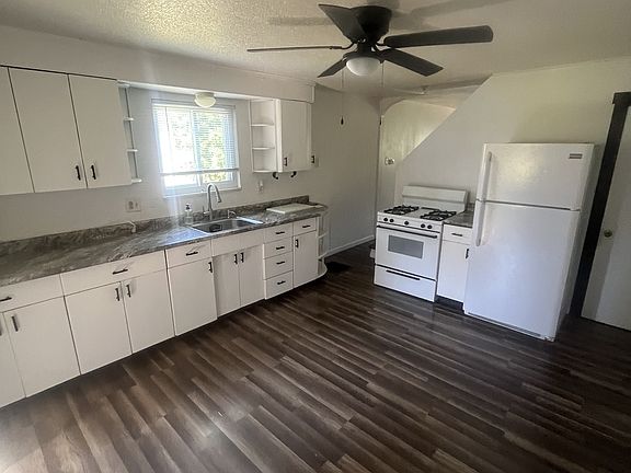 half a duplex two bedroom one bath large, Eat in kitchen , laundry room off of the kitchen on same level living room on first level full basement and it has a yard It's in a little town in Plum called Renton.