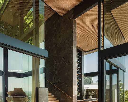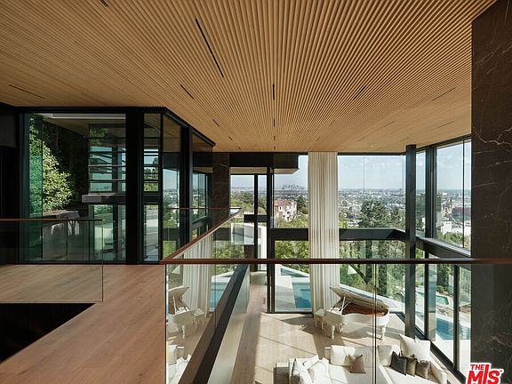 An architectural masterpiece by Paul McClean, 9126 Cordell redefines modern luxury above the Sunset Strip. Rising five levels, this striking residence blends glass, steel, and stone in a seamless expression of art, architecture, and innovation. Created in collaboration with Grammy nominated music producer Alex Da Kid and interior designer Jeff Corney, the home represents a fourteen year creative journey focused on design, technology, and wellness. The interiors feature a refined natural palette of rift oak, suede wall panels, limestone, marble, and light oak floors, creating warmth within bold contemporary form. Spanning approximately 24,000 square feet, the estate offers four bedrooms while the guest home offers five bedrooms. The home is designed to flow effortlessly between indoor and outdoor living spaces, all oriented toward panoramic city views. A central light shaft and cascading water feature bring light and movement through the core of the home. Eight pools are integrated throughout the property, including a wraparound interior pool, an eighty foot outdoor pool, and a two person infinity pool extending from the primary suite. Every element was designed to balance tranquility and energy. The residence connects by a sculptural staircase and glass elevator centered around a four story digital art wall, a showpiece for rotating high resolution installations. The lower levels feature a two lane bowling alley, forty person theater, glass walled nightclub, game lounge, and half basketball court. The glass car elevator lifts automotive showpieces into view within a dramatic subterranean gallery. The full wellness floor is dedicated to health and rejuvenation, featuring a gym, massage room, cold and hot plunge pools, sauna, and cryotherapy. The innovative Pleasure Suite, designed with The Pleasure Chest of West Hollywood, adds an additional layer of holistic living with advanced lighting and a Murphy bed for multifunctional use. The rooftop terrace offers cinematic city views with a retractable movie screen, spa, and ample space for entertaining. Every inch of the home was designed to create a private world of creativity and comfort, a sanctuary where one can live, work, and host without ever needing to leave. The vision of Cordell is an experience of modern artistry and lifestyle without compromise. It is both technologically advanced and emotionally expressive, a home that celebrates light, water, and imagination in perfect harmony. Cordell is more than a residence, it is one of the most significant contemporary estates in Los Angeles, a living piece of architectural art representing the next generation of luxury living.