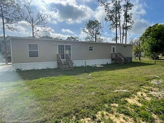Experience county living on this large 4.84 acre semi-wooded lot located not far from town and amenities. A 2021 manufactured home sits on 4.84 fenced acres along with a new 60x40 pole barn. The home features a modern farmhouse style with vinyl plank flooring and has a large kitchen with tile backsplash, a large stainless farmhouse sink, SS appliances, an island/bar with butcher block countertop, and a large 14x5 pantry. The home has a large utility room with a laundry tub.