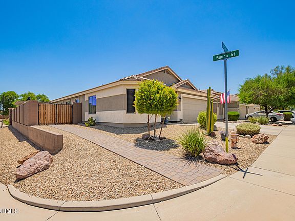 This home has it all! Pride of Ownership! Almost everything remodeled/upgraded. With beautiful LVP & tile flooring, no carpet, two-tone neutral paint, modern shutters throughout, & vaulted ceilings. Enjoy both a living room & great room, plus a stunning kitchen with quartz counters, black stainless appliances, & walk-in pantry. French doors lead to a covered patio & resurfaced pebble tech heated pool with water feature & above-ground spa. Updated bathrooms. Water Softener. East-facing backyard & north patio offer ideal afternoon shade. Backs to green space and sits high above the street for unobstructed views. RV gate with pavers connects backyard to front. All mechanicals updated. Close to Luke AFB, hiking/biking at White Tank Mountains, Library & Nature Center, & Presada shopping/dini