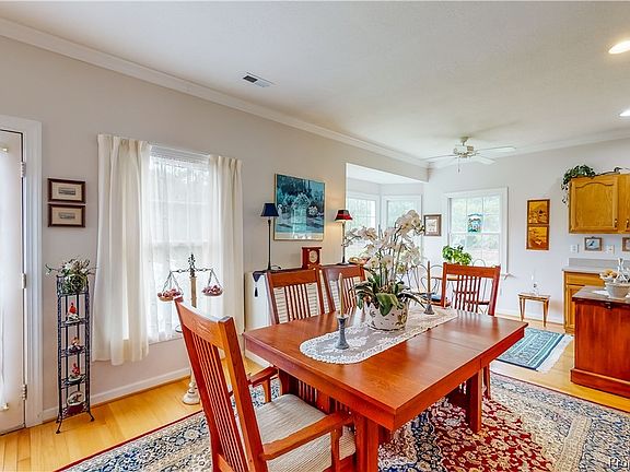 Welcome to this charming rancher in the Orchard Hill section of Stonehouse. This home offers an inviting open floor plan, seamless flow between living spaces, and an atmosphere perfect for entertaining and everyday living. With 3 beds, 2 baths, and 1,732 sq ft, it provides comfort and functionality for the entire family. A nice primary suite plus two additional bedrooms provide flexibility for guests or a home office. The bonus room above the 2-car garage is versatile, perfect as a media room or home gym. Step outside to a serene oasis with a trex deck overlooking the private, park-like yard. Enjoy the outdoors under the electric awning. A white picket fence adds classic elegance. The Orchard Hill pool is within walking distance. Easy access to I-64. Don't miss this remarkable property!