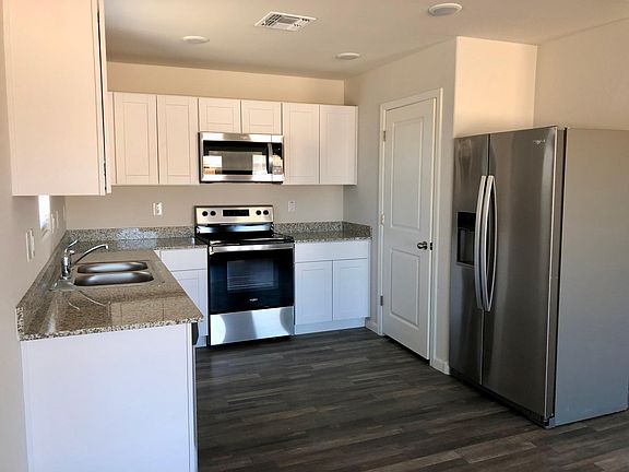 Step into this beautiful never lived in before Arizona City Home! This 3 bedroom and 2 bathroom house that features a cozy living room for all the entertainment you need with vinyl wood flooring in the common areas with carpet in each of the bedrooms. Gourmet kitchen with plenty of counter and cabinet space, Quartz countertops throughout the home along with stainless steel appliances. Primary bathroom includes dual sinks and a soaker/tub combination in each of the bathrooms! Front yard comes landscaped with gravel and plants, two car garage and the perfect home to rent for you. Schedule a time to tour this property and don't miss out!