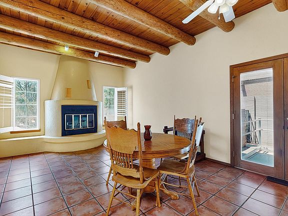Pre-Inspected! Charming 3BR, 2BA, 2CG home in the desirable Heritage East subdivision! La Cueva School District! Features gorgeous Saltillo tile, 3 cozy fireplaces, classic vigas, plantation shutters, and skylights that flood the home with natural light. The kitchen comes fully equipped--all appliances convey. Enjoy mirrored closets, ceiling fans, tile-surround shower, and double sinks. Unique Venetian-painted wall pairs beautifully with the tongue & groove ceiling. Relax by the window seat and take in the peaceful ambiance. This home blends Southwestern charm with everyday comfort!