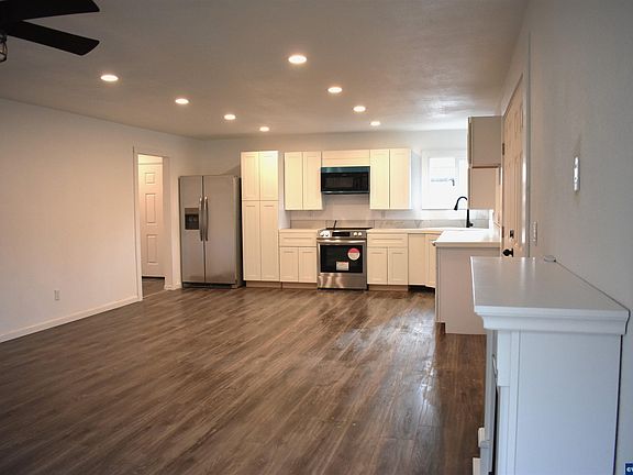 Beautifully updated home sits on a corner lot in great neighborhood a few blocks from an elementary school & town. Completely remodeled 2 bed, 1 bath home w/open floor plan has new flooring, paint, vinyl windows, cozy electric fireplace in living rm that has new slider to fenced yard. Kitchen has new stainless-steel fridge, dishwasher & range w/microhood, cabinets & countertops. New gas water heater. Updated electric and plumbing. Sheetrocked garage & RV parking. MUST SEE!