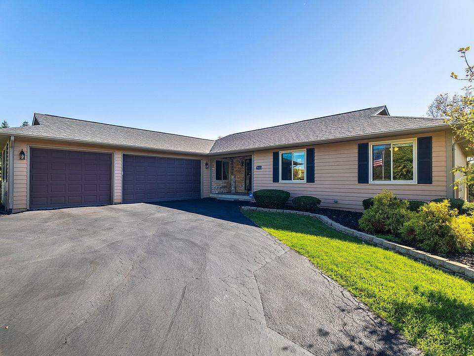 Welcome Home! This beautiful ranch-style home blends comfort, space, and modern updates in one perfect package. Step inside and fall in love with the open-concept great room, featuring volume ceilings, surround sound, and a cozy wood-burning fireplace - ideal for relaxing or entertaining. With a new roof, newer windows, and newer wood laminate floors, this home is truly move-in ready. The chef's kitchen boasts granite countertops, updated cabinetry, hardwood flooring, and plenty of counter and cabinet space. Enjoy casual meals in the eat-in kitchen or step through the sliding doors to your huge Trex deck overlooking peaceful nature views complete with a hot tub and no homes behind you for ultimate privacy. Your private primary suite features a walk-in closet, a beautifully newer primary bath, jacuzzi tub, double sinks, and a separate shower, a true retreat after a long day. The laundry room, located conveniently off the kitchen, includes its own half bath and extra pantry storage. The massive unfinished basement is clean, open, and ready for your ideas - finish it to add living space and increase your home's value. Don't miss the heated 3-car garage with tons of storage space, a tankless water heater, and the extra land to the left of the home - all part of your property! Located in a desirable area surrounded by nature, recreation, and convenience, this home offers privacy, character, and room to grow. Homes like this don't last long - schedule your showing today!