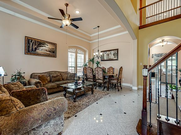 Gorgeous custom build home by Joseph Paul completed 2010.High ceiling, open kitchen w 42-in cabs, granite counters & stunning granite tile flooring. Downstairs features master suite, 2nd bed office room with attach bath, large kitchen & breakfast area, large family room with 22 FT ceiling, and formal living and dining area. Upstairs features 3 bedrooms, one and half bath & media room with pre-wire. Media room has attached half bath with 3 windows and easily can be used as game or bedroom. Elegant architecture with lot's of windows, 8' doors at downstairs, custom colors, round corners, molding, arches too much to list! Beautiful back yard cover patio (has gas connection). Close to major HWYs. Will not last long.