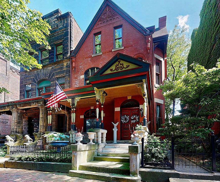 This remarkable 1887 Queen Anne home is situated on a double lot on one of Pittsburgh's most idyllic streets. The interior is rich with character; opulent chandeliers, 7 gas fireplaces, stunning woodwork, crown molding, wallpaper and more. While the original character has been carefully maintained and restored, the home has also been modernized to today's standards. Reap the benefits of a new boiler, high velocity A/C, new gutters and roof. The former portico has been converted to a powder room, and the covered side porch has been enlarged to take better advantage of the beautiful private gardens and water features. Other luxuries include a 2nd floor den, a hobby shed, a 2-car garage with an efficiency apartment on top, and an additional carport. Allegheny West is a vibrant historic community, officially dubbed Pittsburgh's smallest neighborhood, the business district has been recently re-energized, boasting breweries, restaurants, a wine bar, a coffee shop, a yoga studio and more.