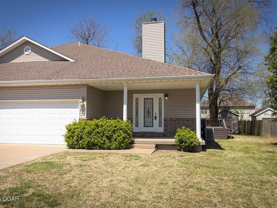For lease. Not for sale. Stunning 3-bedroom, 2.5 bath with a versatile bonus room in Carl Junction. Offering comfort and convenience with easy access to community amenities, walking & biking trails and Briarbrook golf course. This well-maintained 2,200 sq. ft. duplex showcases additional storage & closet space, vinyl flooring and carpeted bedrooms. The primary bedroom is on the main floor featuring a generous walk-in closet, and full bathroom, additional bedrooms are thoughtfully situated on the second floor. The kitchen features stainless steel appliances, large pantry and built-in bar seating that seamlessly connects to the spacious living area. Exterior features recently remodeled deck, golf cart shed. Tenants are responsible for lawn care. Fireplace aesthetic purpose only. No smoking, No vaping, No pets. $50. No cash accepted. Approval required before showing. Available October.