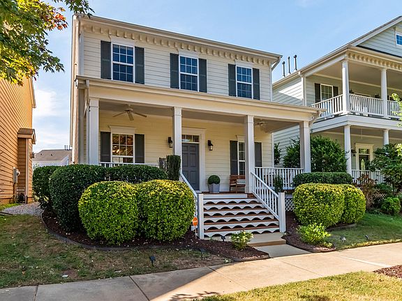 Your PRISTINE dream home awaits in Renaissance Park! This Charleston-style home in pristine condition offers 3 bedrooms, 3 full baths, and a detached two-car garage just minutes from Downtown Raleigh. The sellers spared no expense: a renovated kitchen with quartz countertops, custom cabinetry, stainless appliances, wine fridge, and designer finishes; remodeled bathrooms, updated lighting, and fresh interior paint throughout. The main floor features a family room with vaulted ceilings, gas-log fireplace, and abundant natural light. Upstairs, the owner's suite includes a walk-in closet, dual vanities, soaking tub, separate shower, plus a versatile loft for office or playroom. Outdoor living includes a rocking chair front porch, screened back porch, and private fenced backyard with landscaped courtyard connecting to the detached garage. In sought-after Renaissance Park, enjoy sidewalks, clubhouse, fitness center, pool, and playground—all near I-40, shopping, dining, and Downtown Raleigh.