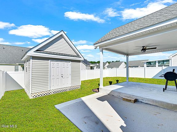 Step outside to the new 14x14 covered porch with a high ceiling and outdoor fan. It is the perfect spot to relax or host gatherings. The backyard is fully fenced with white vinyl fence and includes a 12x12 commercial-grade shed. Ideal for storage, a workshop, or a hobby space.