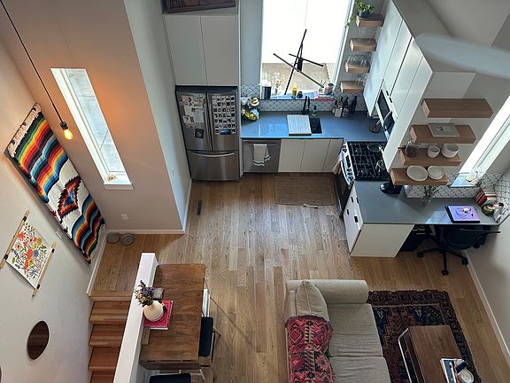 Side yard spacePrivate carportOpen living spacesRecessed lightingSoaring natural lightQuartz countertopsCozy loft-style layout