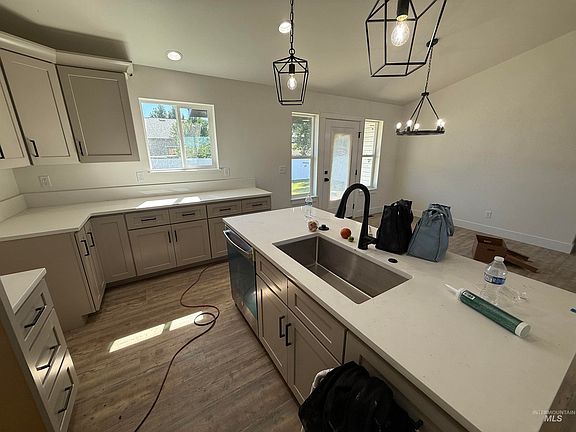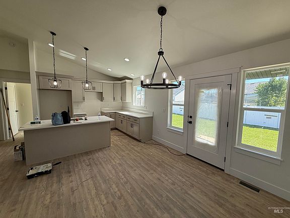 This beautifully designed residence, built by CA Homes, Parade Winner, Magic Valley Builder's Parade of Homes, 2023, 2024, 2025 and offers an open-concept design with vaulted ceilings, 4 bedrooms, 2 baths, and 1482 sqft., of living space. The home is thoughtfully appointed with quartz countertops, locally made soft-close cabinets, luxury vinyl plank flooring, and plush carpeting. The kitchen features a four-burner gas cooktop with a griddle and there is plenty of storage throughout the home. In addition, enjoy modern elegance from Pfister matte black plumbing fixtures throughout. The property is light and bright, and the 2-car garage is finished with baseboards! Includes front & rear sprinkler & Sod and vinyl fencing. Discover your dream home in Stoney Ridge Subdivision, Jerome, Idaho! Seller is offering a $10,000 seller credit with a full price offer. BTVAI
