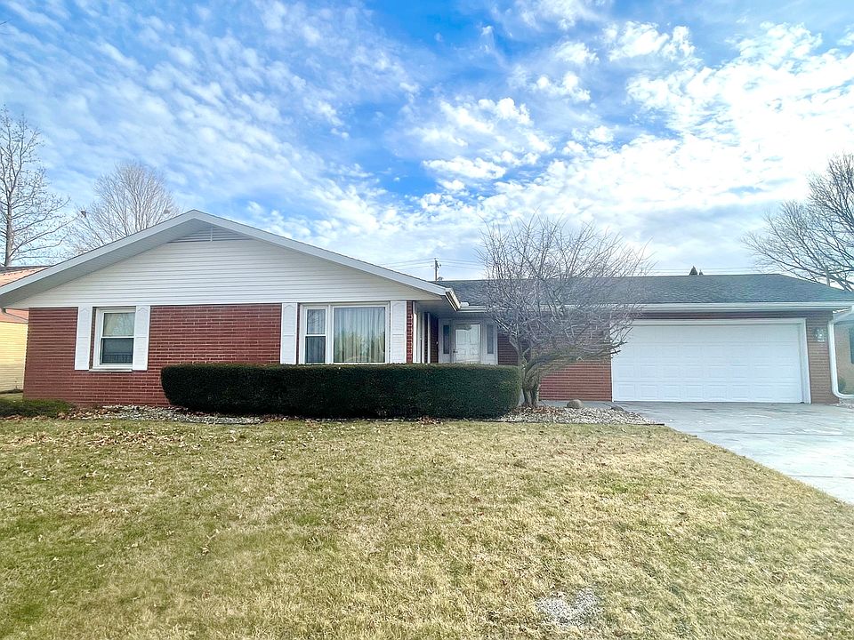 Move right in to this clean, well maintained 3 bedroom 2 bath brick ranch with 2 car attached garage! Well lit living room features large corner picture windows. Kitchen/dining room combination offers updated kitchen and appliances, wood flooring and sliding door access to the concrete and brick patio and backyard. Main level laundry with newer washer and dryer. Primary bedroom offers double closets and full bath with walk-in shower. Finished basement provides extra living space with a spacious and versatile family room, utility and bonus room with cabinets and plenty of storage. Radon mitigation system. 100 amp electric. Appliances to remain.
