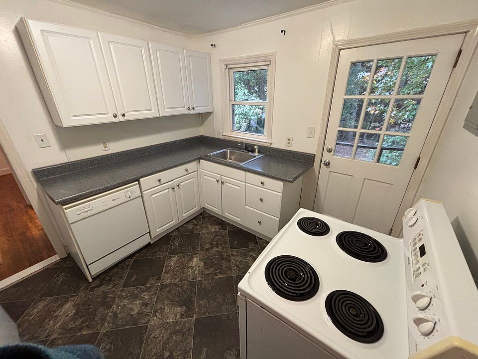 Freshly painted. hardwood floors, updated kitchen and bathroom. Good water pressure. Washer/Dryer, Dishwasher, stove, refrigerator. Lots of cabinet space in kitchen. Two bedrooms, one bathroom. One large bedroom, one smaller bedroom. Good setup for bedroom and office or bedroom and child bedroom. One block from West Wendover road that is the quickest access to all of Greensboro. One parking space off street. Near Downtown, A&T, UNCG. Well insulated and quiet area. Cats OK. No dogs sorry. No smoking. Tenant pays electric, gas and water. No smoking.