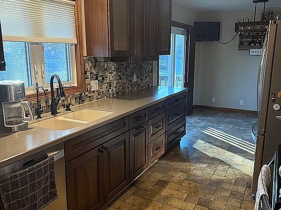 2 car attached heated garage with large storage shed in the back yard including inside and outside dog kennel.