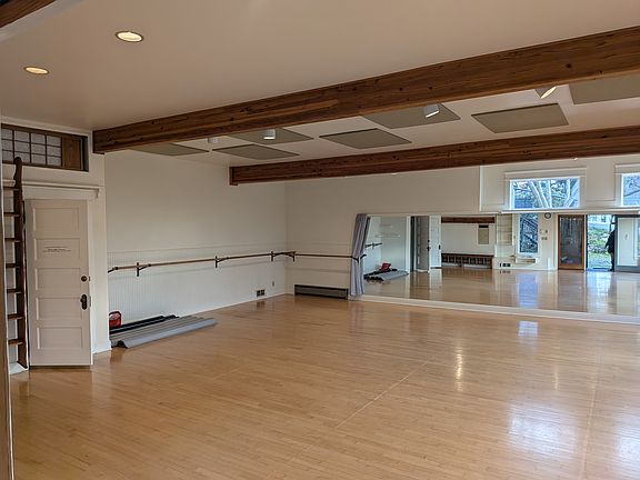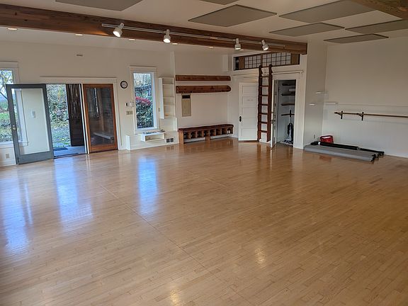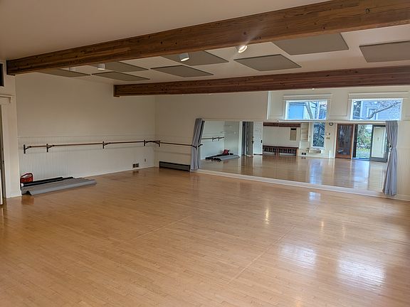 Delightful movement studio for lease with potential for music, art, dance, yoga, or workshops. This space features 960 sq. ft. with maple flooring, a separate entrance, ample parking, and half bath.