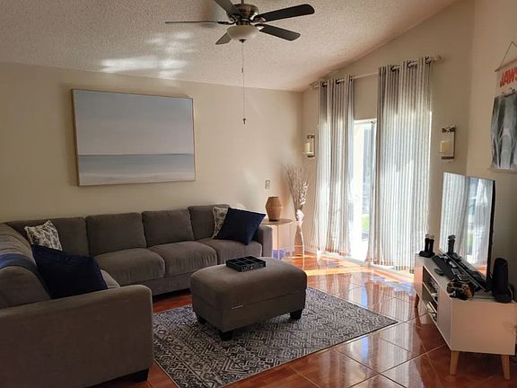 For rent. Ready to move in. Rent includes lawn care and internet. Rent is available for up to 120 days. If you plan to stay longer, an HOA application will be required, with a maximum rental period of 180 days.. This lovely one-story home offers 4 bedrooms and 2 bathrooms in great condition. Tile flooring throughout and private screened pool. This wonderful community offers everything you could need, including 24-hour gated security, a clubhouse with a gym, tennis courts, a jogging track, and a community pool. The standout feature is the pool deck and spa, which overlook a serene pond and tree-lined buffer zoneperfect for relaxing in the evening. Located in a peaceful neighborhood