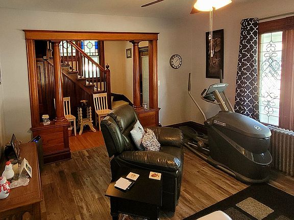 Watch the 4th of July parade from your front porch. Just 2 blocks from downtown, and walking distance to city park and beach, sits this gem. This house is tastefully updated, but maintains much of the original charm and beautiful woodwork of the house (the lighting through the stained glass really makes the house glow). Laundry has been moved to the main floor for convenience, but the basement is dry and ready to offer loads of storage. A cute little water closet offers you and your guests a place to wash up without heading up the stairs. However, the bathroom upstairs is worth the trip. Newly remodeled with a seperate shower and freestanding soaker tub this spacious bathroom has ample room for two people to get ready without tripping over one another. The boiler has been inspected and is ready to keep you warm with a gentle heating system that warms the house without drying out the air. A mini split ductless system installed in 2020 keeps things cool in the summer and can heat the house at temperatures down to -20 degrees; offering a back up system and air circulation if desired. The two systems make for a customizable system that optimizes comfort. A large kitchen with tons of cabinets and room for a table offers plenty of space to get together even when the dining room fills up. If you prefer to move the party outside; the yard in the back is mostly enclosed with a sunny back yard. With plenty of shade to the front and side of the house it's up to you; bask in the sun or keep cool in the shade. Speaking of shade the big beautiful Ash trees on the property have all been treated by an arborist against the Emerald Ash Bore and professionly trimmed. This neat tidy package in just the right spot offers an equidistant trip to both schools and the new wellness center. At less than a mile the kids will be there in no time whichever school they're currently attending. Swing on by to take a look; this house won't last long. Call to make an appointment.