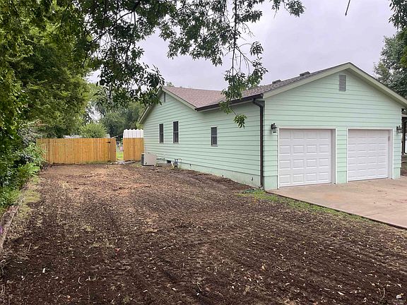 A NEW PRICE for this spacious 2,800 sq. ft. home that offers an open floor plan designed for both comfortable living and entertaining. The large kitchen with an eat-up bar is truly a delight and perfect for family meals and gatherings. Featuring 4 bedrooms and 3 bathrooms, the home also boasts a full finished basement complete with a family room, additional bedroom, bathroom, and an office. Convenience is built in with a 2 car garage that opens into a practical laundry/mudroom. Outside, you will find a 30x40 Quonset building with alley access and parking. It is ideal for hobbies or a workshop. Enjoy the outdoors with a newly fenced backyard, new sprinkler system front and back, and a freshly planted yard with a covered deck to watch the Kansas sunrises each day. A private well for outdoor watering keeps the yard looking good and is cost efficient. Located on a quiet street just a few blocks from the schools and the city park, this home offers both privacy and convenience for you.