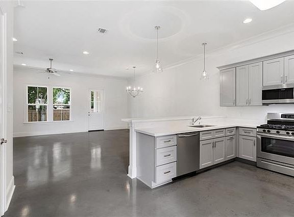 Centrally located in the heart of Metairie, this pristine 3 bed, 2.5 bath town home features an amazing kitchen that opens up to the great room with natural lighting & pearl - scored concrete. Primary bedroom is downstairs with en suite bathroom to include double vanity sinks, a gorgeous bathtub and separate shower as well as a great walk in closet! Upstairs has two bedrooms, a full bathroom with double vanity sinks, and a laundry room with washer/dryer hookups. Lawn care included in rental amount!