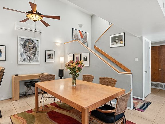 2261 sq. ft. contemporary two-level home in Pueblo Alegre, with three bedrooms, two full bathrooms and an attached studio with full bathroom and separate entrance (with a good rental history, or could be an additional bedroom/home office). The main bedroom, second bedroom and a full bathroom are on the upper floor. Both bedrooms have large, 8’ x 4’ south-facing windows. The second bedroom is large, light-filled and could be an excellent workspace for an architect, photographer or artist. The third bedroom and bathroom are on the ground floor. Living spaces and kitchen are open plan. A hidden bonus is an additional storage room upstairs. The property is privately located at the end of a cul-de-sac, and has charming outdoor areas, a patio with large shade sail, and a large Morgan storage shed discretely located behind a fence on the edge of the property. There are two off-street parking spaces. Easy, close-by access to walking and biking paths on the Santa Fe River Trail. Pueblo Alegre subdivision, located opposite Frenchy’s Field City Park, has several small parks and a children’s playground.