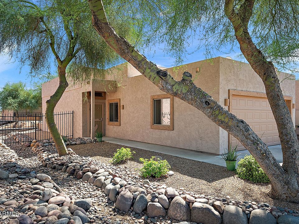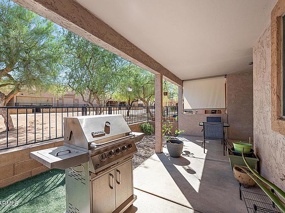 Don't miss this end/corner unit townhome in the Apache Dream Home community, with no neighbors in the front or back and beautiful mature shade trees. This former model home features a private covered patio, BBQ, and access to the community pool and fireplace gathering area. The HOA covers landscaping, pest control, and more, making this unit incredibly low-maintenance. The spacious kitchen offers ample cabinet and counter space, along with a super-quiet Bosch dishwasher. 10-foot ceilings throughout with skylights for lots of natural light. If you're looking for a move-in ready townhome, this is the one! Plus, nearby freeway access makes getting around the Valley a breeze!