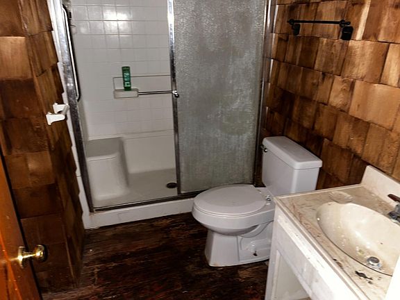 Great investment property! 2 story home with a bedroom and bathroom upstairs and 2 bedrooms and 2 baths downstairs. Heavy hard wood paneling and hard wood flooring on first floor. Metal roof, single garage big enough for 2 cars, and large back yard with a large and small storage building. Huge pergola in the oversized back yard.