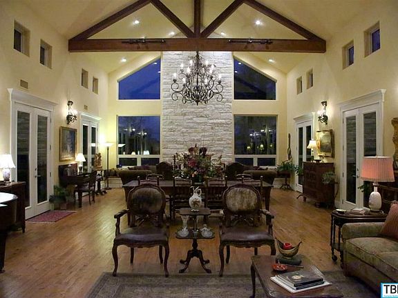 Elegant Custom 100% limestone home situated on .632 acres w/wet-weather creek & borders Mill Creek driving range. Custom interior amenities include; hand-hewn OAK floors, exposed WOOD beam vaulted ceilings, Southern Living designed kitchen, wine cellar or safe room, HUGE den w/FULL bar & appliances. Exterior amenities include; Guest house or STUDIO, RV carport, golf cart garage, workshop, & automatic sliding gate for private parking. Private landscaped patio w/hot tub. If you like to entertain, this is it!
