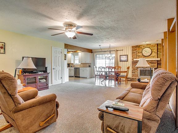 Picture yourself in this spacious and inviting home. The open living area seamlessly flows into the dining and kitchen areas, making it ideal for hosting family gatherings or simply relaxing after a long day. A woodburning fireplace with gas starter offers warmth and ambiance during the cooler months. It features an oversized primary bedroom with ensuite bathroom and a giant picture window plus two secondary bedrooms that share a jack and jill bathroom. The inside laundry room has lots of cabinets and a closet. Storage is plentiful, ensuring that clutter will never be an issue. Step outside onto the huge covered patio, where you can enjoy outdoor meals or simply relax with a good book while taking in the fresh air. If you're someone who loves to tinker or work on DIY projects, the workshop in the back with electricity might be your own dedicated space to let your creativity flow! Don't miss the extra large storage room in the garage!