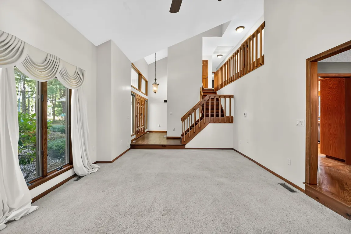 - Features: Skylight, Vaulted Ceiling(s), Ceiling Fan(s), Sunken, Wall/Wall Carpet