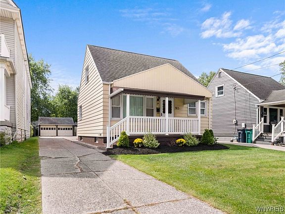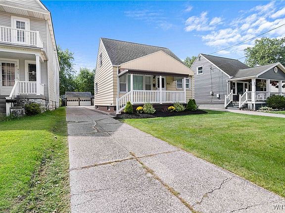 The full basement offers endless possibilities—finish it for additional living space or enjoy it as ample storage. Step outside to an all new vinyl and maintenance free steps to covered back deck, perfect for relaxing or entertaining, overlooking the partly fenced backyard. The extra long driveway branches into a double wide section offering plenty of parking and leads to a two-car detached garage with openers and a storage shed to complete the package. With a park right across the street, close to conveniences this home blends comfort and charm!