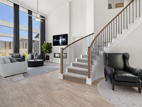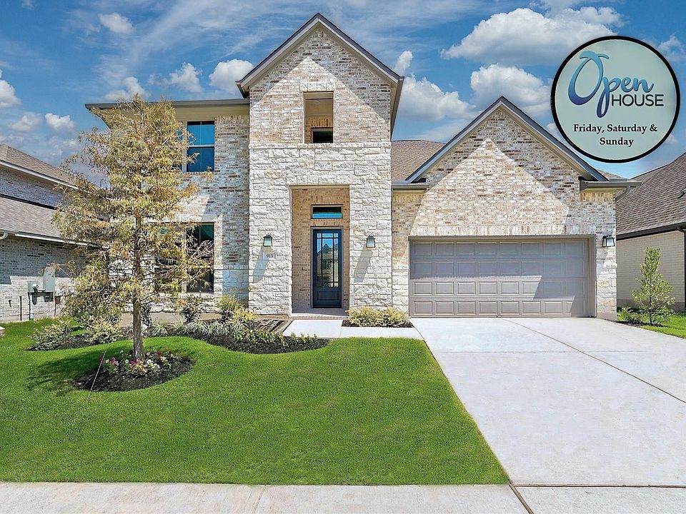 Westin Homes NEW Construction (The Wimberly II - A) READY NOW! In highly sought after Wolf Ranch. 3 CAR GARAGE. Gorgeous 2-Story Rotunda Entry with Wrought Iron Circular Staircase. Gourmet Open Island Kitchen with Quartz Countertops, 42" Tall Kitchen Cabinets with Uppers & Built-In Stainless Steel Appliances. Family Room with High Ceilings & Wall of Windows. Large Covered Patio. Private Primary Suite Down with Luxurious Bath Featuring Double Vanity Sinks with Quartz Countertops, Large Walk-in Shower & Free-Standing Tub. Guest Suite with private bath on First Floor. Study with Double Doors. Upstairs features Media Room, Game Room & 2 Beds / 1 Full Baths. Smart Home Package. Tray Ceilings, Architectural Details and more!