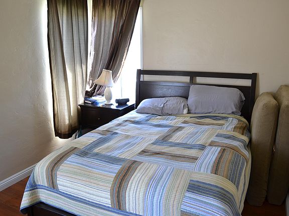 Charming duplex on large corner lot. Comes with fenced private backyard. Open 1 bedr with large storage room and laundry hook-ups inside. Very nice upgrades through out. Newer plumbing, electrical, bathroom. Kitchen with cherry cabinets, granite counter tops. Travertine and pergo flooring throughout. Newer cabinets. Newer windows and doors. New paint in and out. Close to shopping, dining, major transportation, schools, etc. Pet friendly subject to additional deposit. Owner pays for water and gardener. Tenant pays for trash, gas, electricity